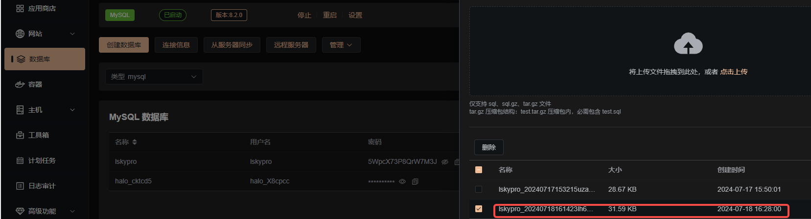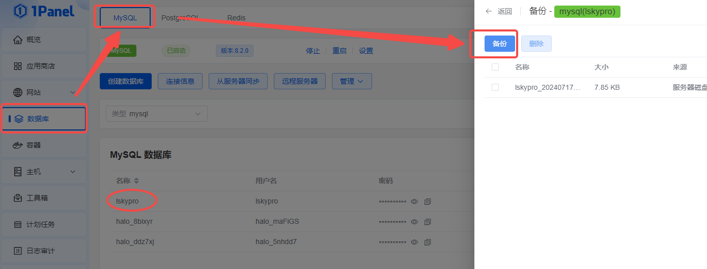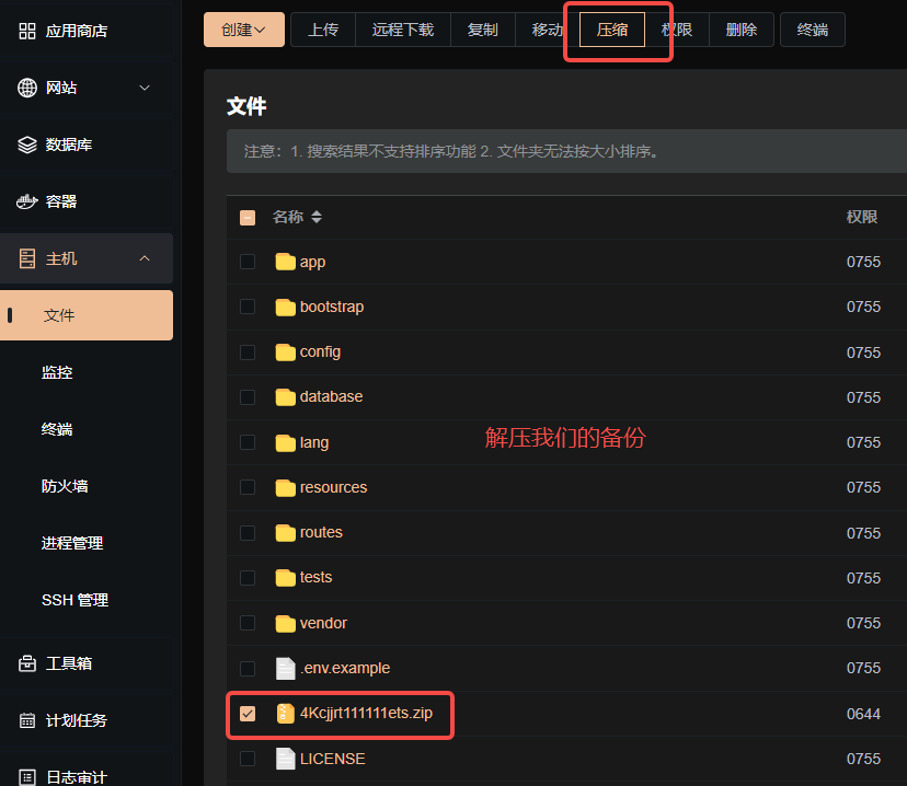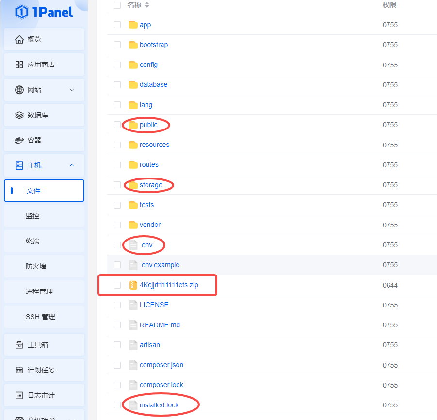 .env文件和installed.lock文件以外的所有文件夹以及文件备份数据库